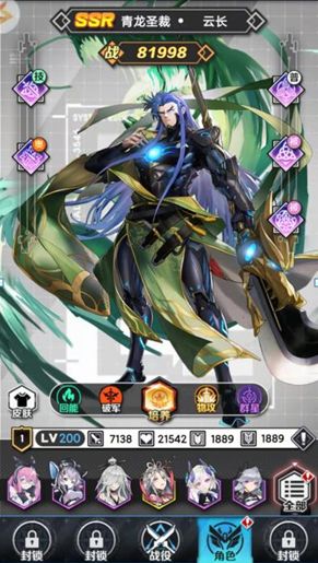 看完技能介绍,云长是个直线输出针对高攻击力英雄的SSR英雄,普攻针对敌方最高攻击的角色还能提高自身攻击力,天赋被动提高最终伤害,意味着可以持久战,自带领域提高暴击率,战技提高暴击伤害,绝对是个输出猛将。