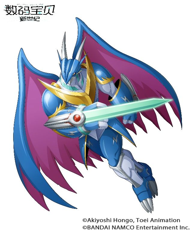 只出现在从古代数码世界流传下来的某个“预言”中,传说中的圣骑士型数码宝贝。该“预言”记载了网络守护神“皇家骑士”的出现,据说在数码世界最大的危机时刻,被称为“皇家骑士”的数码宝贝们会集结在“预言”的源头。在“皇家骑士”中,究极V龙兽拥有神速的速度,其行动之快无人能及。