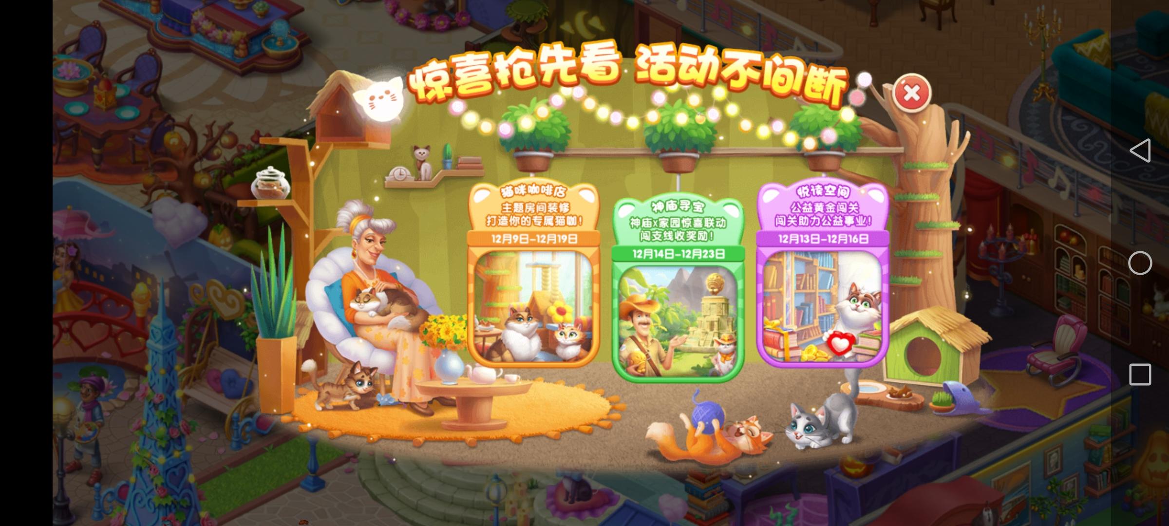 从12月9号开始家园首先迎来了猫咪咖啡馆房间,然后是神庙寻宝与家园梦幻联动,最后还有一个悦读空间一个公益活动,未来的一段时间我又活跃在家园了😂