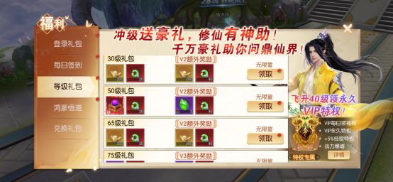 V4零元购对我们等级冲榜的作用非常之大,因为在这个VIP礼包中有送“超级升级丹”。超级升级丹的效果是200级以前使用直升1级,200级以后使用获得26.5亿经验。而且V4零元购后, 3天后会返还投入的全部灵玉。
