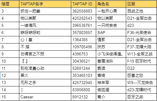 下列为挑选并符合参与的楼层名单,奖励会在1-3个工作日进行发放,届时请多关注游戏内邮箱哦。