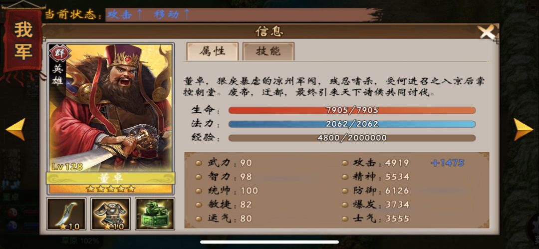 特性二 MP值加500点,特别适合低星辅助董昭,因为一星辅助蓝较少刚好弥补这个缺点。 特性三 移动力加一 加移动力总没毛病谁会嫌弃大长腿呢。