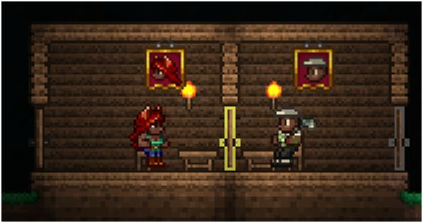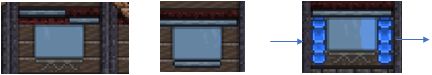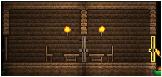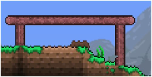 用锤子敲击平台三下后可在平台下挂东西。挂上史莱姆旗子便会给人窗帘的感觉。