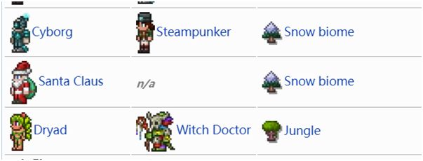 · 寻找NPC,在游戏中,有五名NPC会跟随刷怪机制出现,分别是骷髅商人,被捆绑的哥布林,被捆绑的发型师,被捆绑的巫师,痛苦亡魂。利用刷怪机制的规律,你可以更加轻松的找到他们。