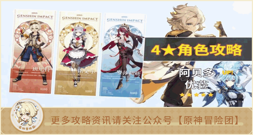 【V2.3攻略】#角色攻略# 【原神冒险团】阿贝多/优菈池同期四星角色配装解析