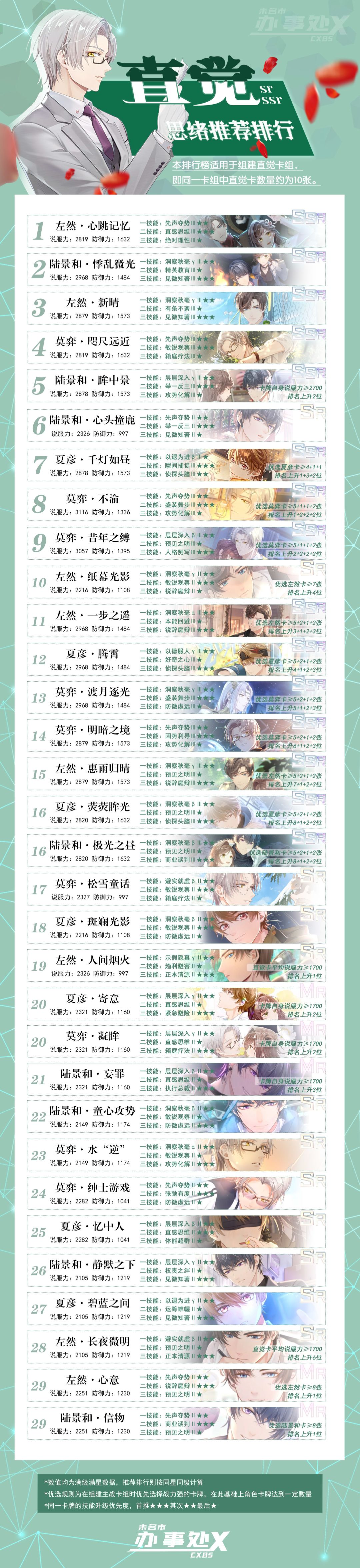 PS:因在计算本次思绪排行时还未得到陆景和新卡《潮生情动》数值,所以随下次更新再更新其排行~