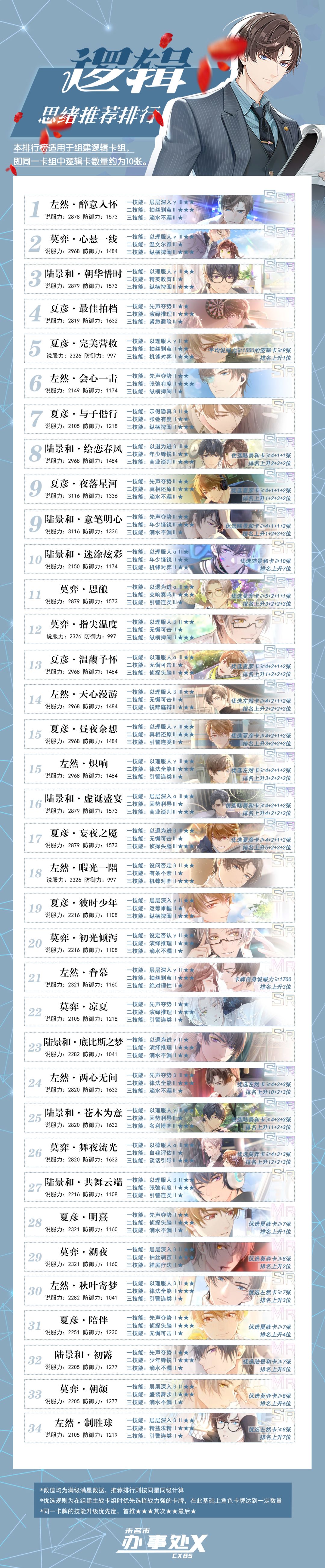 大家好,最新的思绪排行千呼万唤始出来啦!因为之前的思绪排行攻略图片又长又大既不方便保存也不方便发送,所以美工老师痛定思痛将其改成了现在的格式,忘记技能具体详情的也没关系,我们后续还会推出《技能详情》帮助大家更方便查看技能~