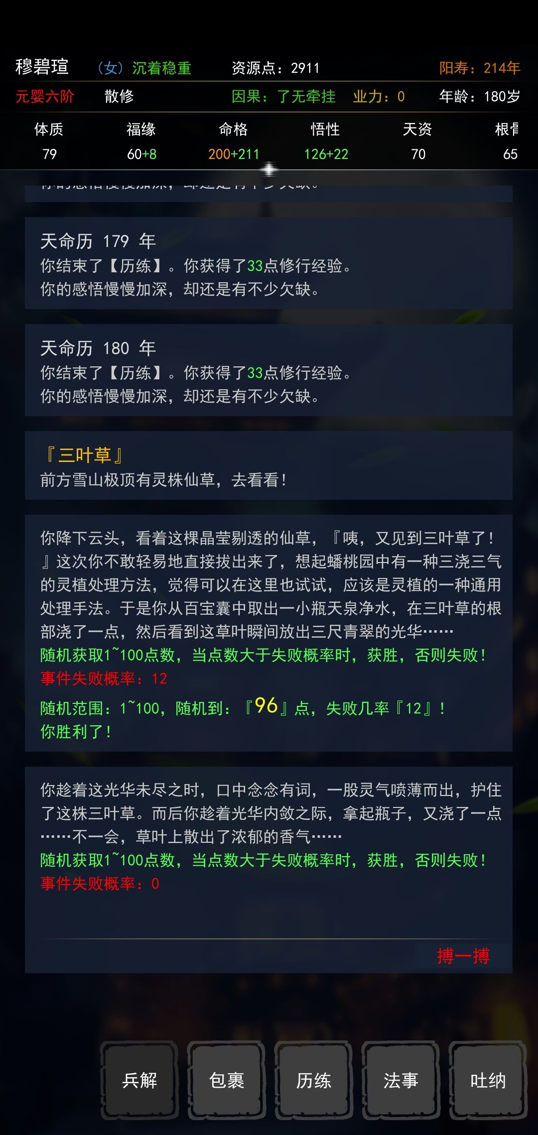 进入第二阶段选择绛草仙子袋子时掷骰成功就会卡死,且不能兵解。