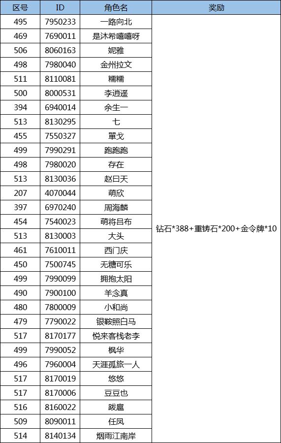 获奖楼层将随机抽取30层,楼层回复内容不正确或不符规定则视为无效,活动结束后5个工作日内公布获奖名单并发放奖励至游戏中邮箱。