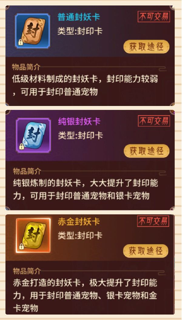 当我们看到不同品质的妖兽宝宝并想要捕捉时,记得要使用对应的封妖卡。少侠们最好每一种品类都携带七张以上,这可是笔笔计算出来外出捕宠的的最佳配置! 注意!在捕捉妖兽时把战斗模式切换成手动,以免少侠在清理妖兽的时候误伤到妖兽宝宝哦~