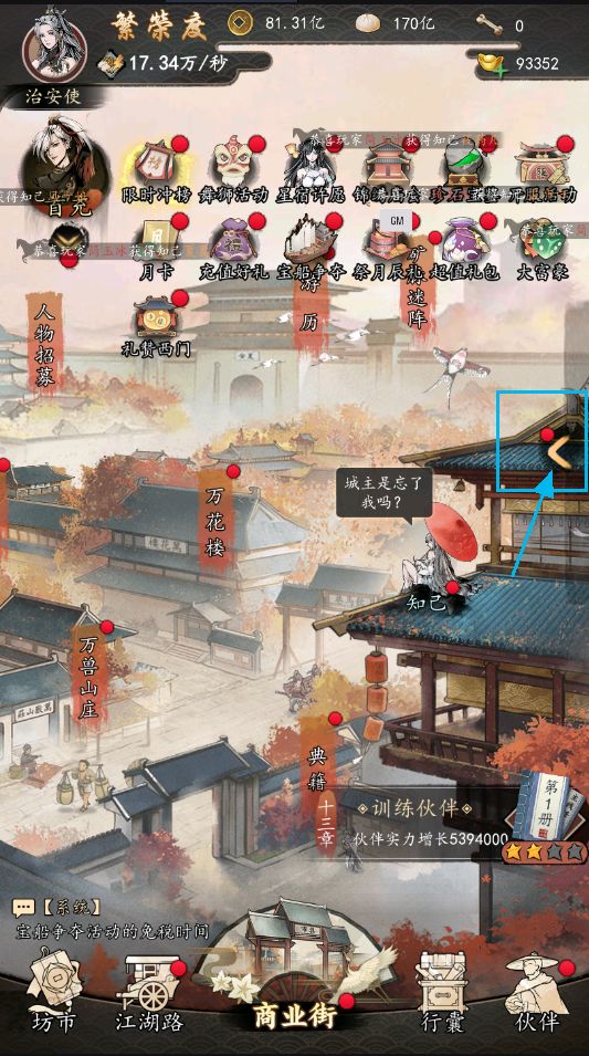 (步骤1:在《踏马江湖》(测试服)界面右方点击【箭头】)