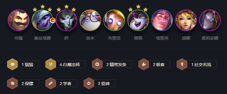 这套阵容在目前的云顶大环境中还算不错,之前唯一怕的阵容就是挑战永恩,新版本永恩削弱后登场率没有上个版本那么高了,在面对刺客枪手等阵容时也比较好打,打刺客扎堆站,打枪手就要布隆对好位,在目前来说这套阵容当属上分利器。