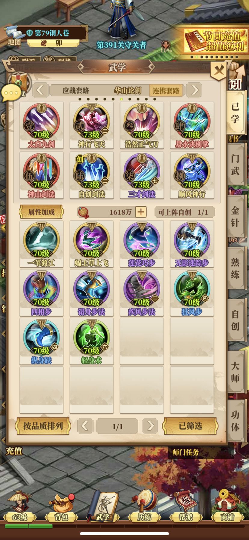 轻功以后 升级筛选攻击防御 同系优先 升级 生命选择内功升级部分外功也有