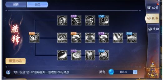 2.开启后就可以通过升级获得对应的经脉点,可以进行经脉相关的学习;每个经脉都有不同的效果,新技能的效果是最明显的,所以最好最快的学习所有的新技能。
