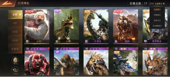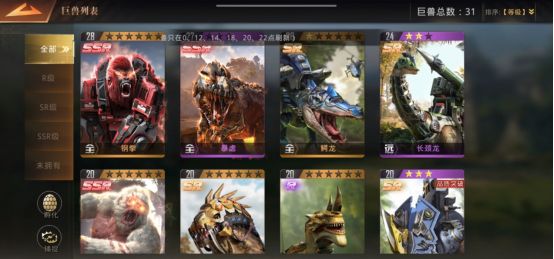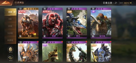 钢拳,暴虐,这两个是主战巨兽,搭配远程巨兽,是必胜的搭配, 前期的话用SR的巨兽也可,俩近战搭配远程很奈斯。