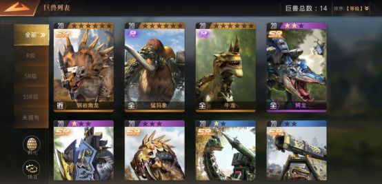 暴虐+鳄龙+猛犸 前期最易得,好升级,打怪升级和建造军队就够了,其它的巨兽前期不好得,相比着来说这三个作用在前期更大一点