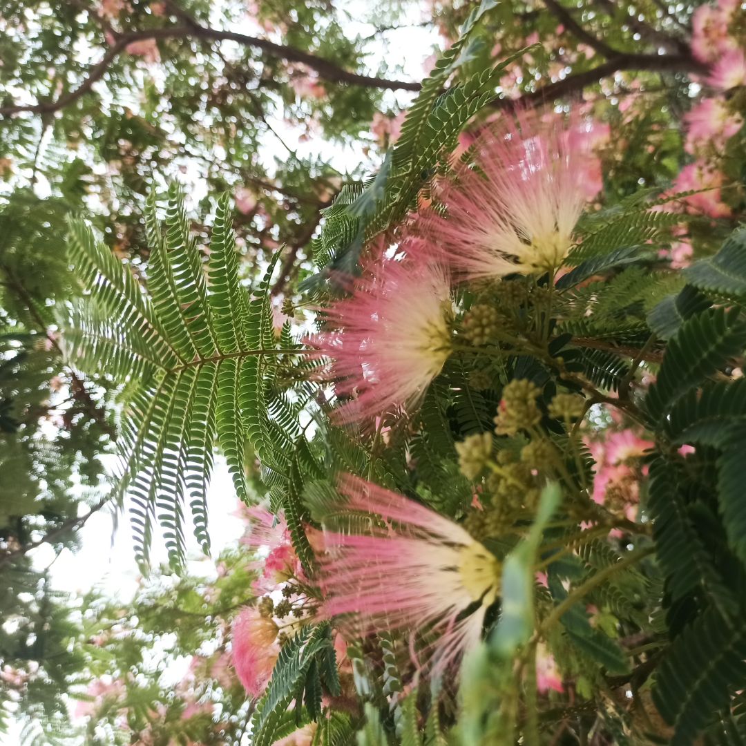 其实那个时候合欢早就谢尽了,栾树也只是按记忆描摹。附一张合欢近照,希望我还有机会再回到临海路看她。