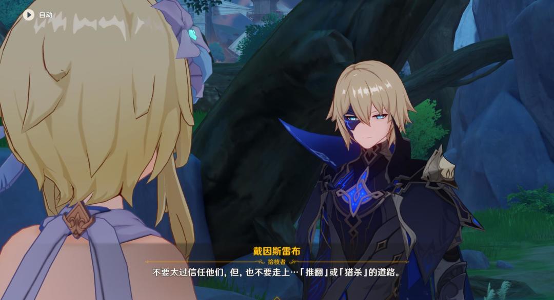 不要信任神明,也不要推翻或者猎杀。这句话在戴因口中说出来还是比较有分量的,毕竟戴因本身就是坎瑞亚的遗民,主角双胞胎兄妹的旅伴,在剧情中的地位应该仅次于派蒙(具体分析可以查阅上一篇的文章)。