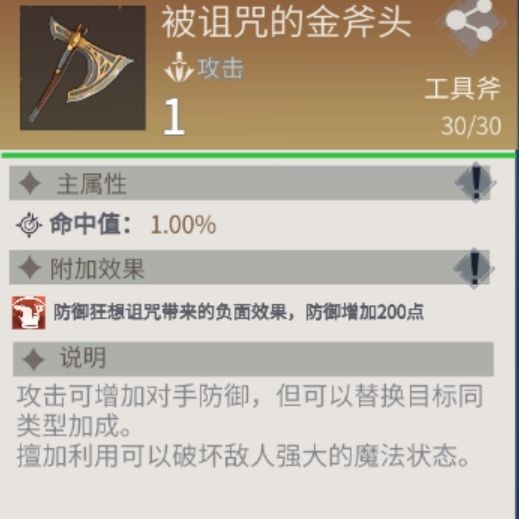 防御状态:在攻击过程中,如出现护盾环绕BOSS或攻击伤害为1点血时,应当使用(被诅咒的金斧头)攻击一次即可打破BOSS防御状态