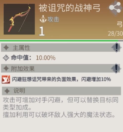 闪避状态:在攻击过程中,如出现旋风围绕BOSS或攻击闪避时,应当使用(被诅咒的战神弓)攻击一次即可打破BOSS闪避状态