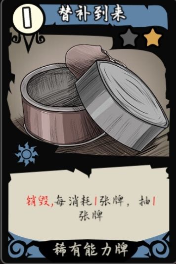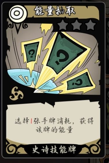 极为重要的卡,通过消耗资源型能力卡给的牌来抽卡和加能量,或者直接把抽到的debuff卡消耗掉,所以游侠是最不怕幻灭的,因为牌库永远是空的,也不需要用魔瘾卡。不过最好不要升级,升级后会浪费许多激励轮次。