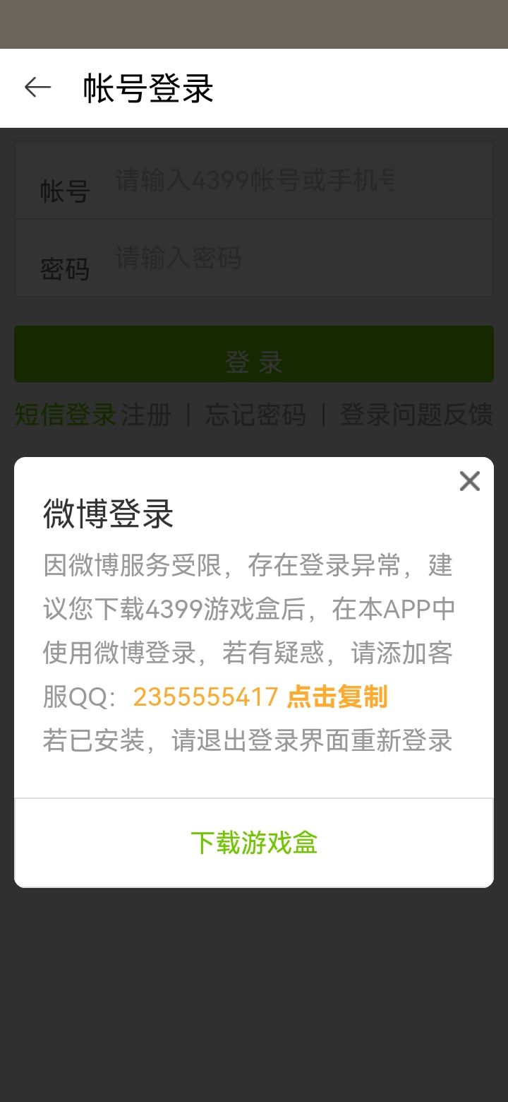 登录就算了,那微信和QQ的还得安装4399,我寻思着吧用微博