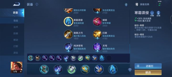 吕布这赛季出装.很顶.队友会玩可以把第六件换成肉.不想混的话就不用.6分钟之前猥琐发育.之后再去多支援队友 .有苍穹之后,直接重拳出击 对面法伤高的话,就像上面那样出.反之就是跟冰心换一下 位置
