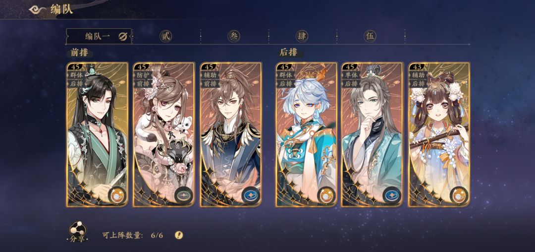 3,我的配置是两群攻一单体,群攻压血线,单体点杀,因为我主攻是玉泽,所以我练的是逍遥,很好用的SSR,突破材料都给他了,能控,回怒,加伤害,但是回头不是跟我一样是打后排阵容,可以不练逍遥,比如安安,惊墨之类,可用用桃山代替逍遥,这里说一句低破桃山可能没有宣连影好用,如果你连小季都没有,只能桃山,宣连影一起上,宣连影用得好能省一个主力输出的资源,很适合单核主力,我看过5保一玉泽杀穿一切