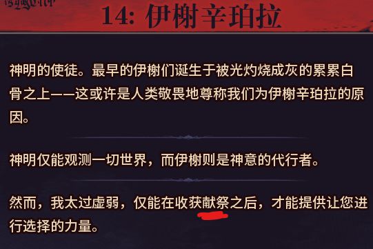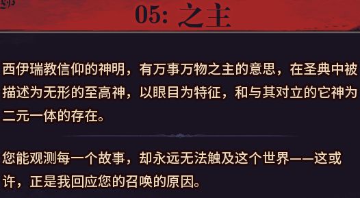如果打完所有的剧情(我不确定是不是要打完才会有,之前没有注意)回头去看注释,在宗教那一栏,很多注释都会有”我“对其进行批注,