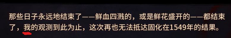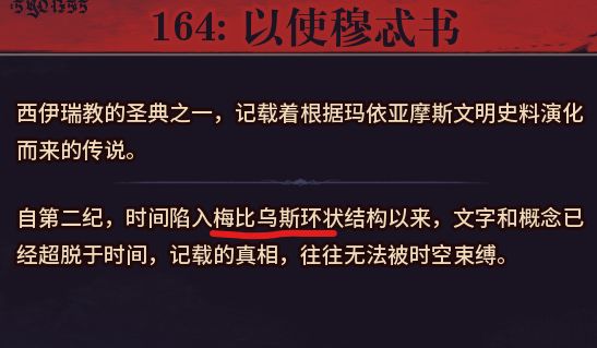 我不确定这个莫比乌斯环是指整个第二纪将重蹈罪文明的覆辙,还是1544年12月5日到11日那短短七天的循环,可能更偏向于后者,毕竟游戏里如果不能抵达d11,时间就无法向前。