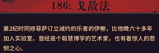 另外,关于歌德嘉,不确定这是一个彩蛋/惊吓/bug,在剧情最开始,有一个词条叫圣歌德嘉的神父,我一直以为是圣歌|德嘉,直到告死天使说的话,”歌德嘉的奴仆“,让我突然意识到是圣|歌德嘉,我当时查了一遍词条,注释依然是圣歌德嘉的神父,但是打完所有的剧情,我回去翻词条的时候,那个词条就变成了歌德嘉的神父……