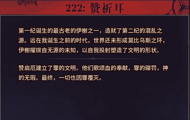 故事应当从第一纪说起,赞祈尔应当是它神,及之主一面二体另一面的伊榭,他以自身为投影,建立了罪的文明,随后罪的文明覆灭,但是罪并没有消失,其余毒流到了第二纪。
