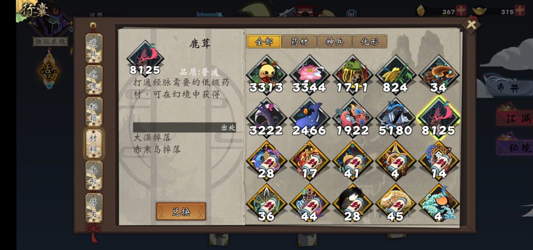 武侠点满经脉药材需求(持续更新)