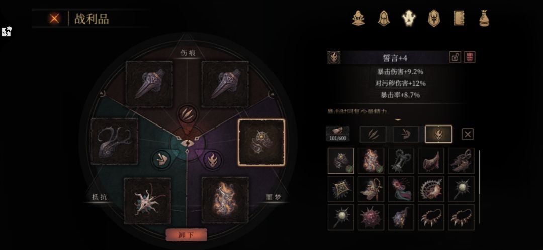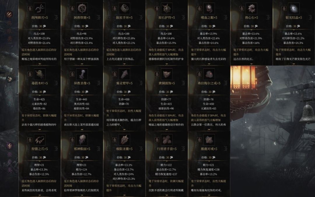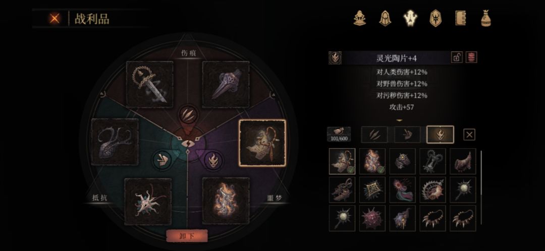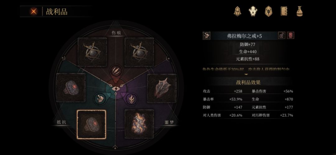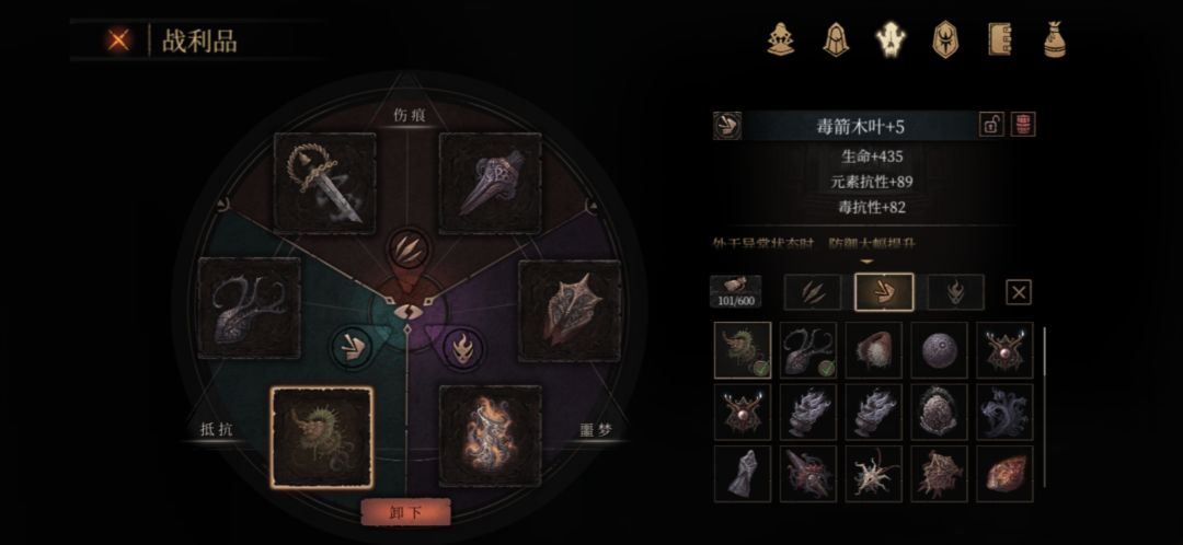 在刷出属性不错的+4或+5抵抗装备后:星环可以替换成毒箭或臂甲跑图用。