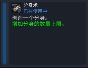 刺客创造一个分身,(最多二个分身)武器与手中武器相同,也可以继承武器的配件;分身血量为10点,没有护甲,可以继承刺客本身的天赋。导师加强:使分身血量翻倍,体型变大。