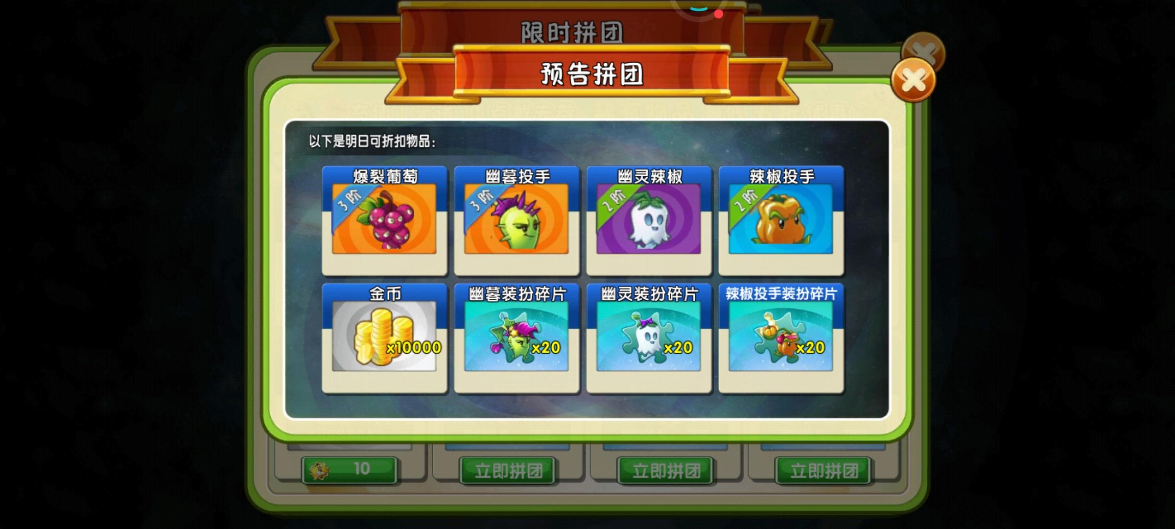 想问一下有人知道拼团后天一直到活动结束的第一个植物(要用那个券换的)吗,要是没有药师,茄子啥的好植物我就换柚子了,剩下的换点金币