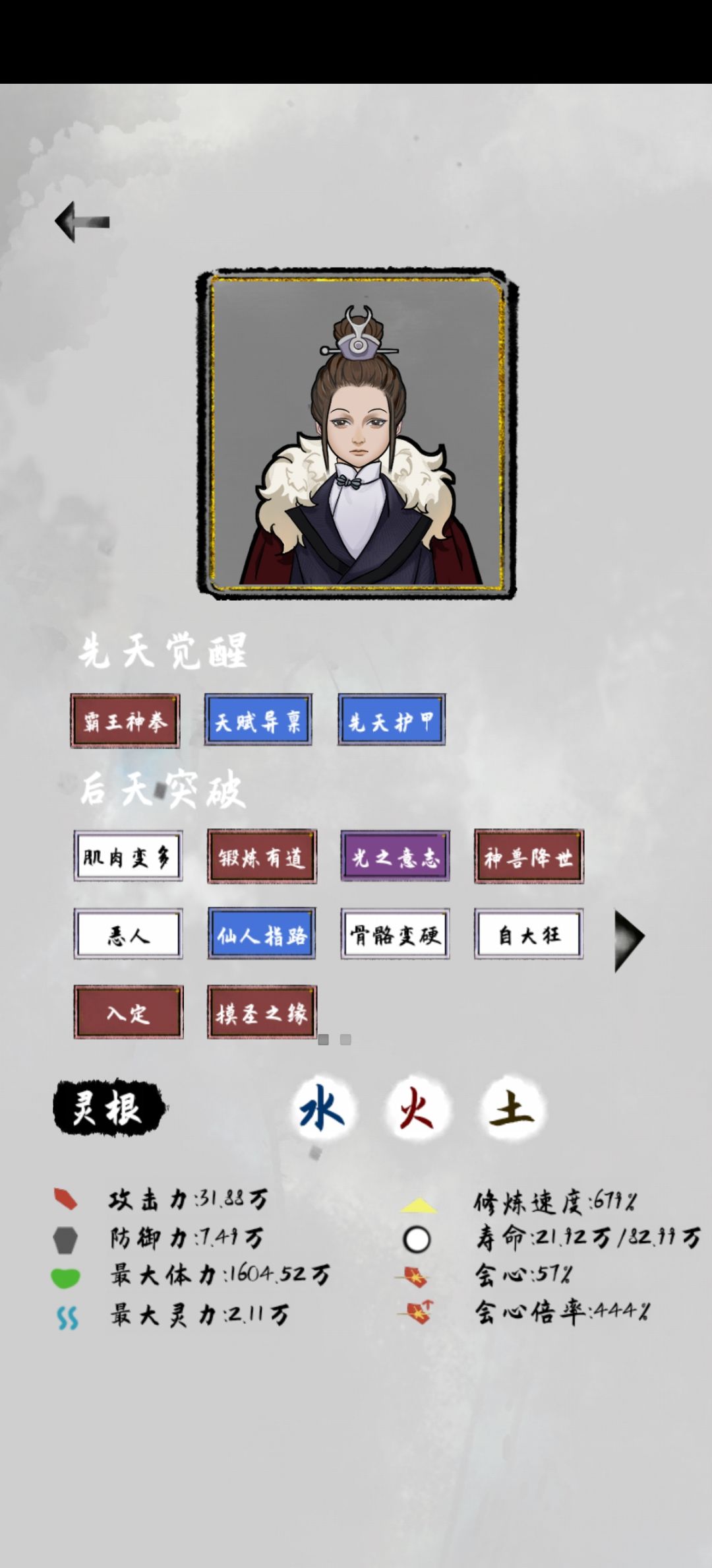 天赋选霸王神拳,锻炼有道,光之意志,吃药吃那个加体力减灵力的药,后期1600w体力,30多w攻击,秒天秒地!