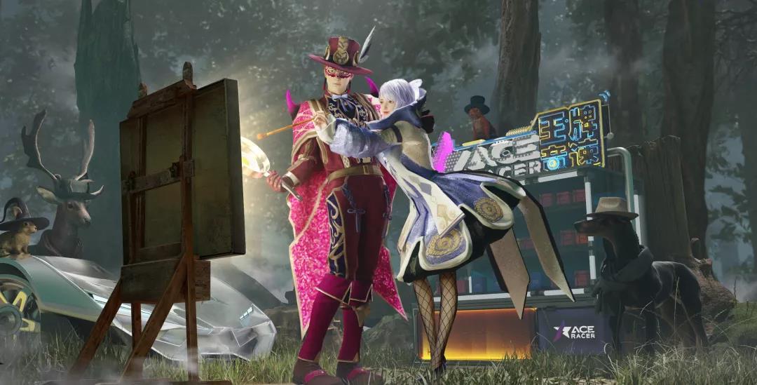 男车手身后不时闪现的钻石蓝光环,与散开的卡牌一起翩翩而动。快来穿上它,化身赛场上的大魔术师,在赛场开始你的惊世演出吧!