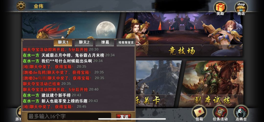 这不,偶尔看看聊天频道,就看到有人在说:天威霸占月中榜,鬼谷霸占月末榜。