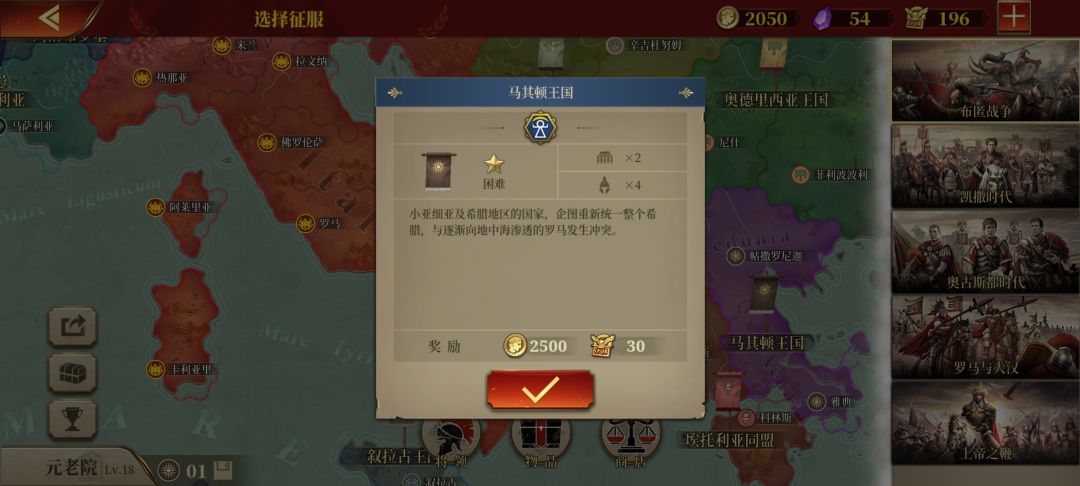 这次我玩一星国马其顿王国,属迦太基阵营,对抗罗马阵营。