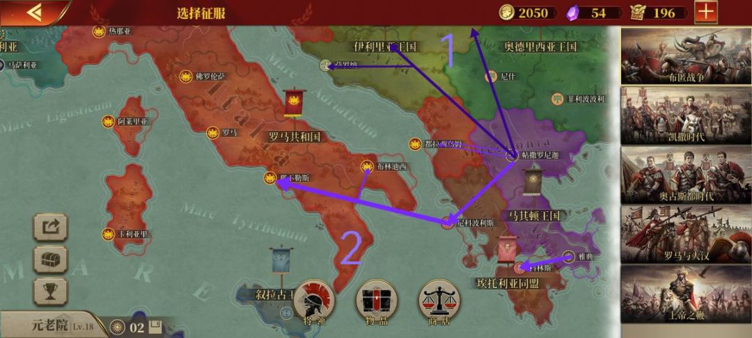 3.我的第一军团由安东尼、阿提拉、贝利撒留领导负责打入意大利东北、高卢东南部与由汉尼拔、斯巴达克斯统帅担负继续深入罗马本土的第二军团遥相呼应。