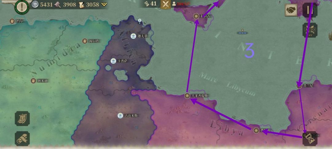 4.我的第三军团由指挥官(骑)、凯撒、庞培带领负责越过地中海,协助迦太基打掉罗马在北非盟友减少后顾之忧。