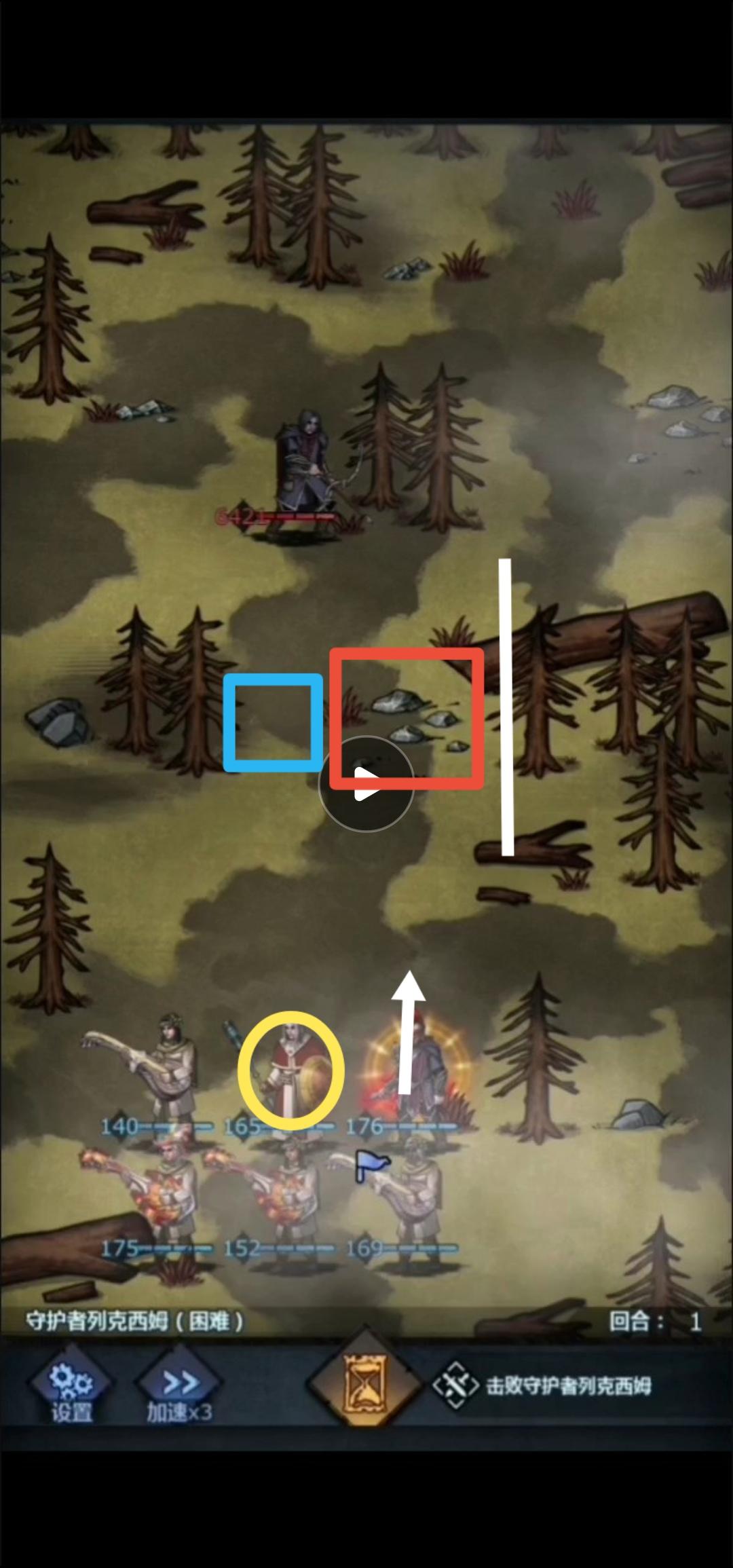 如图黄圈放血低的让小列走到蓝处,第二回合我方流影输出过去就好。这里不会被击飞