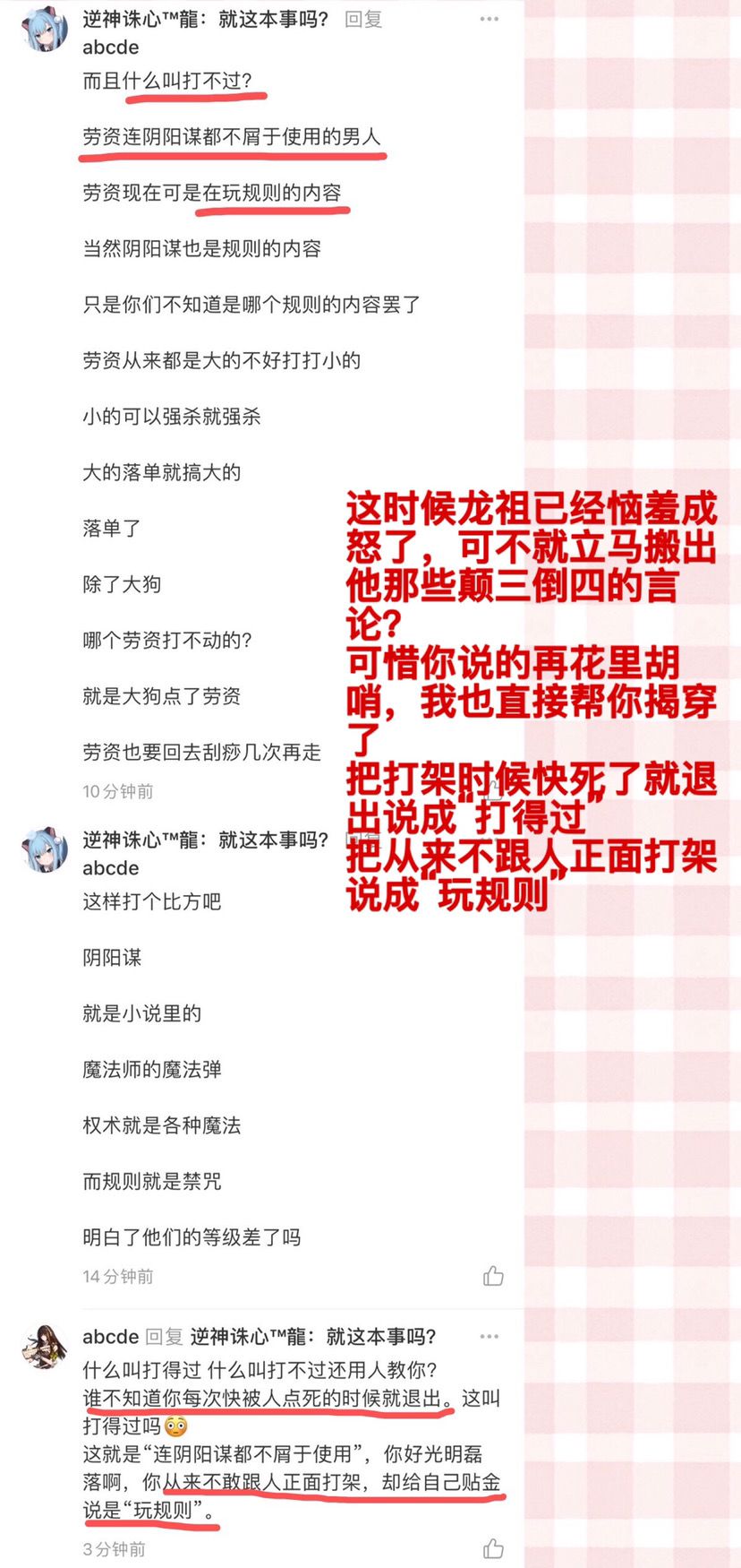 这时候龙祖已经恼羞成怒了,立马搬出他那些颠三倒四的言论。可惜你说的再花里胡哨,我也直接帮你揭穿了: