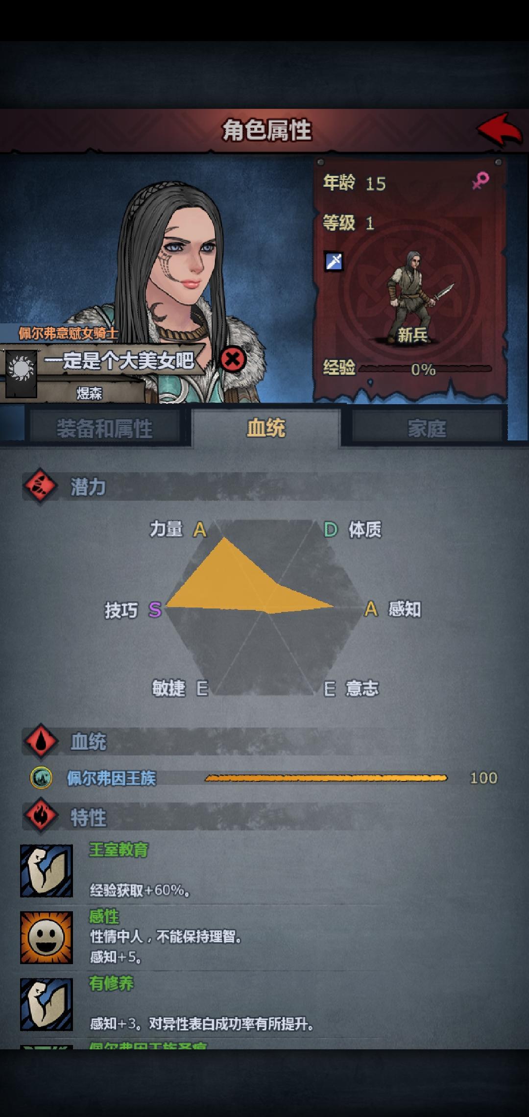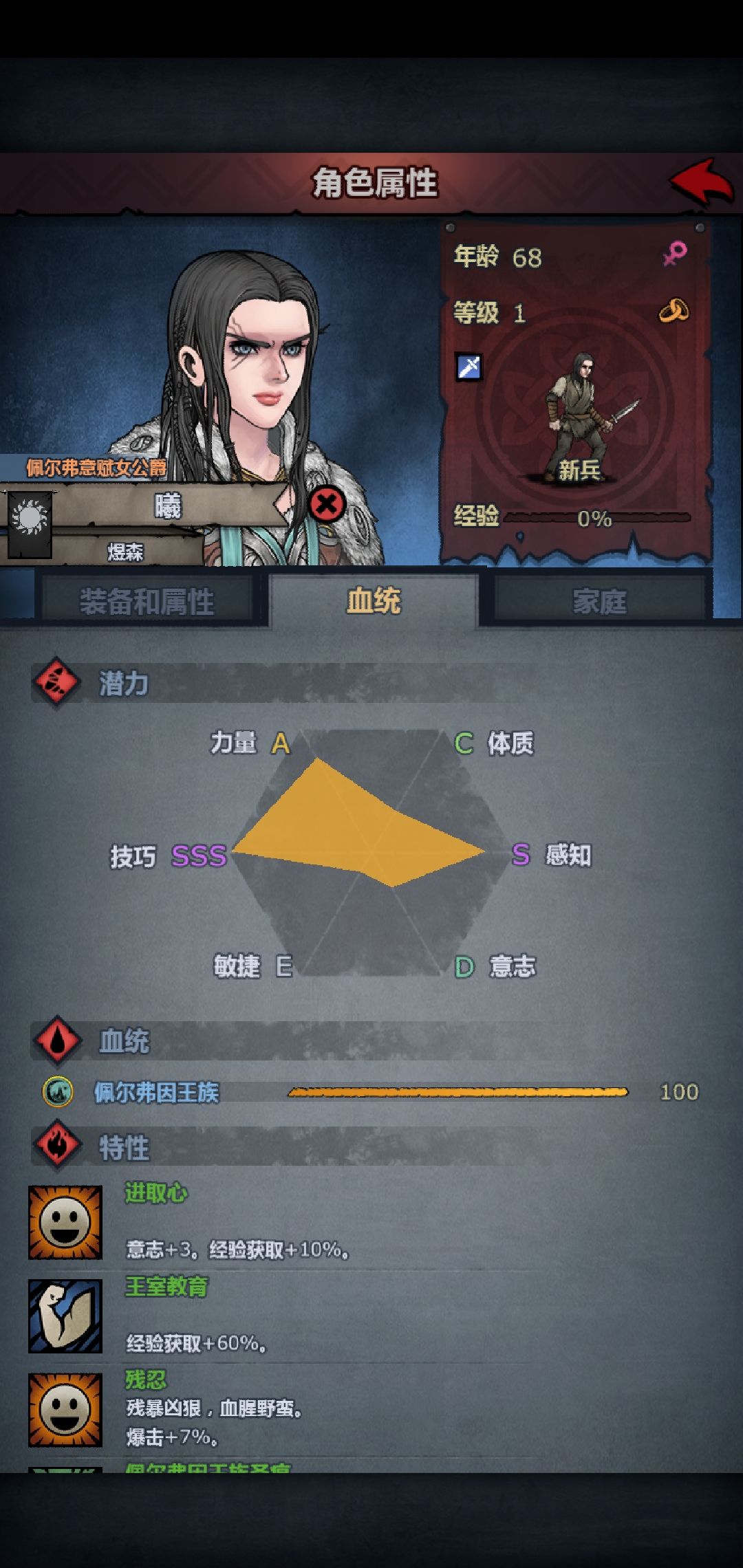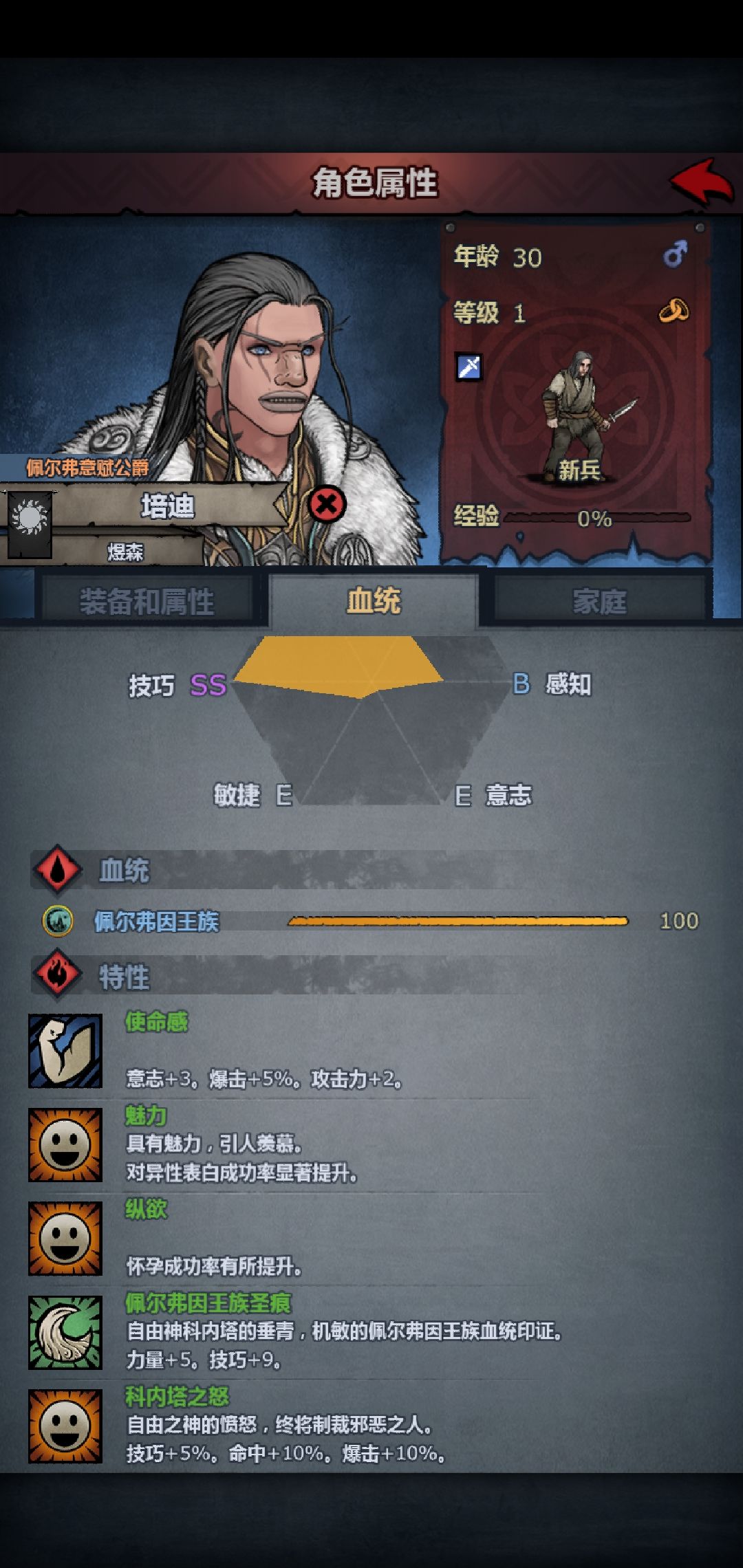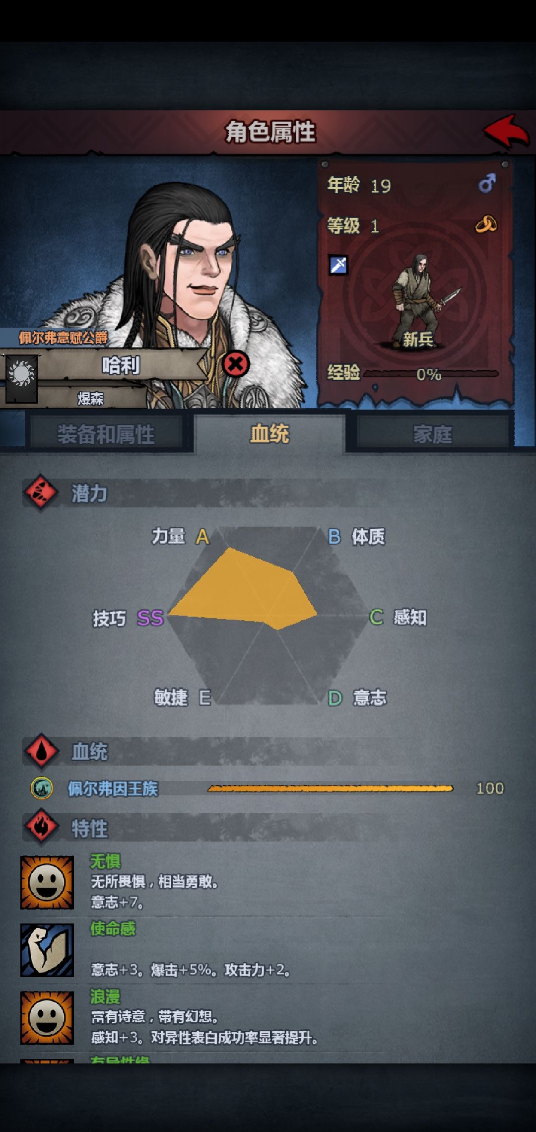这是大致成品图,模拟的前中期60-70左右的一个属性,在这里我推荐长弓手,因为佩尔体大多数低于b,作为大剑士很难抗住熊的伤害;而长弓手作为远程攻击单位,可以配合重步兵一类的援护单位,输出空间比较安全(过八盾比较困难)。