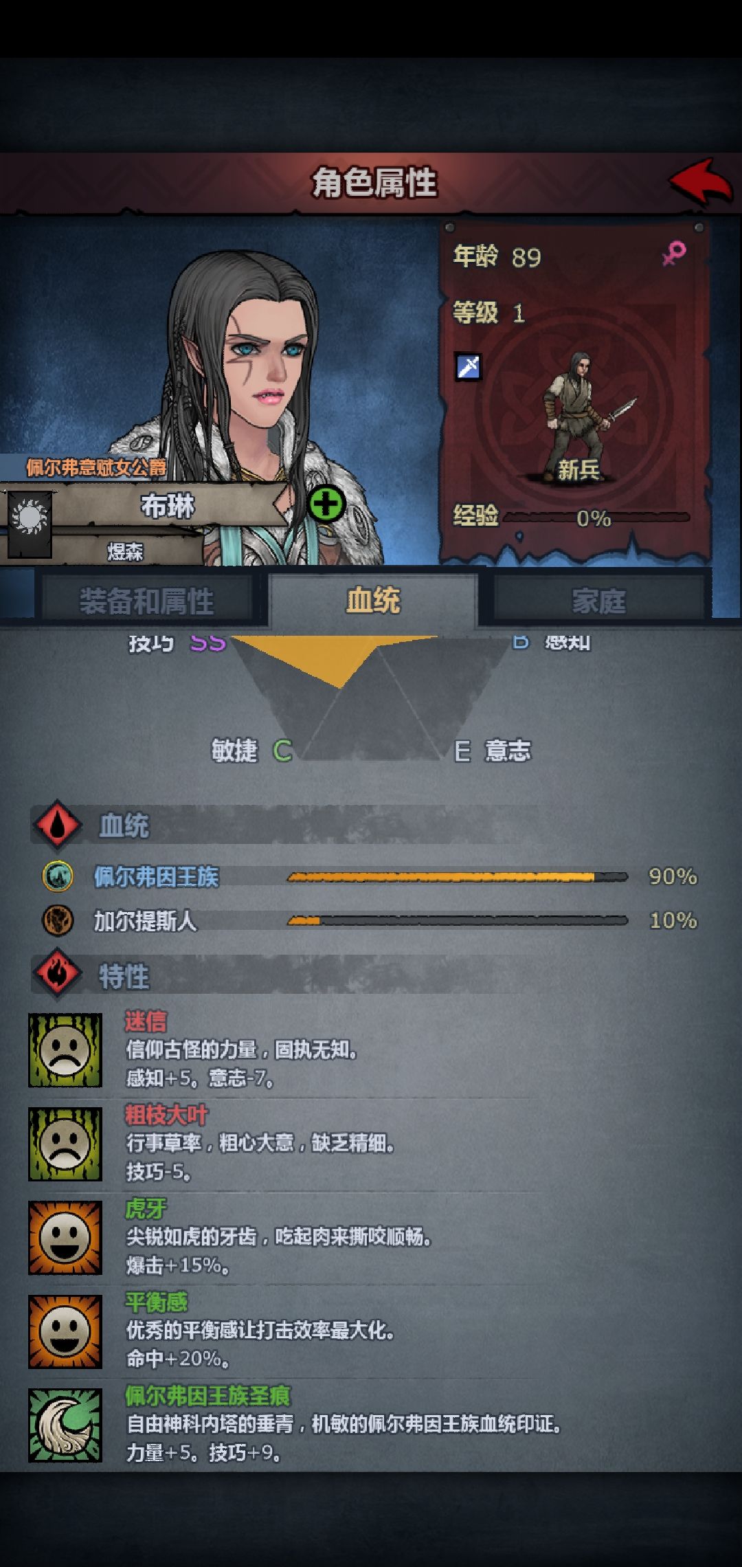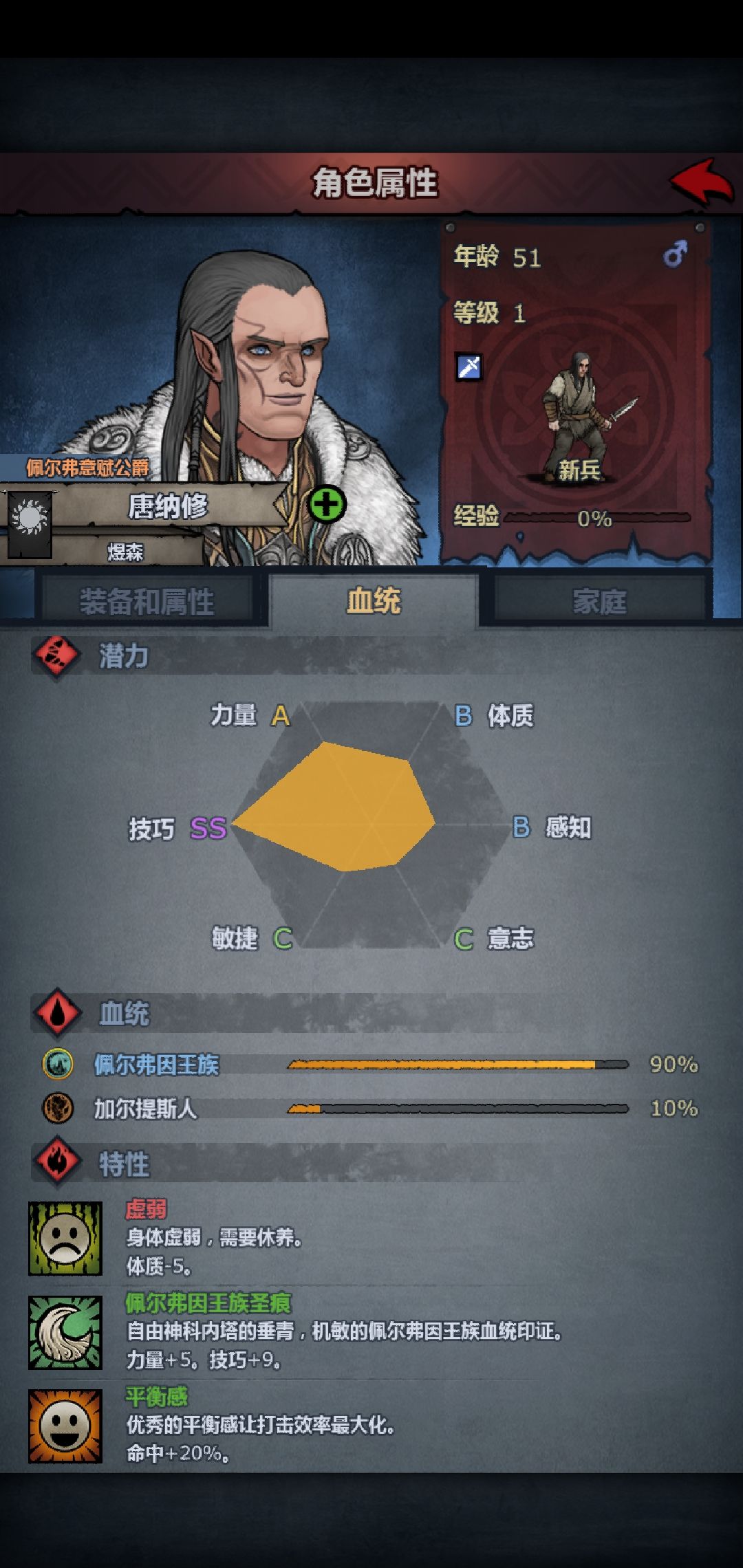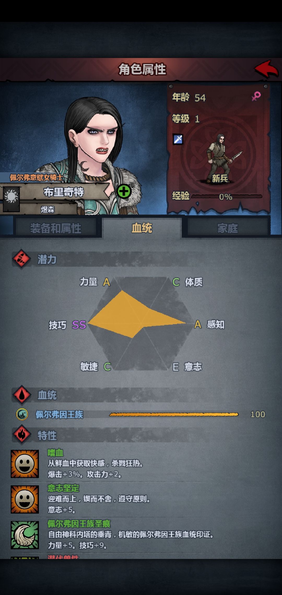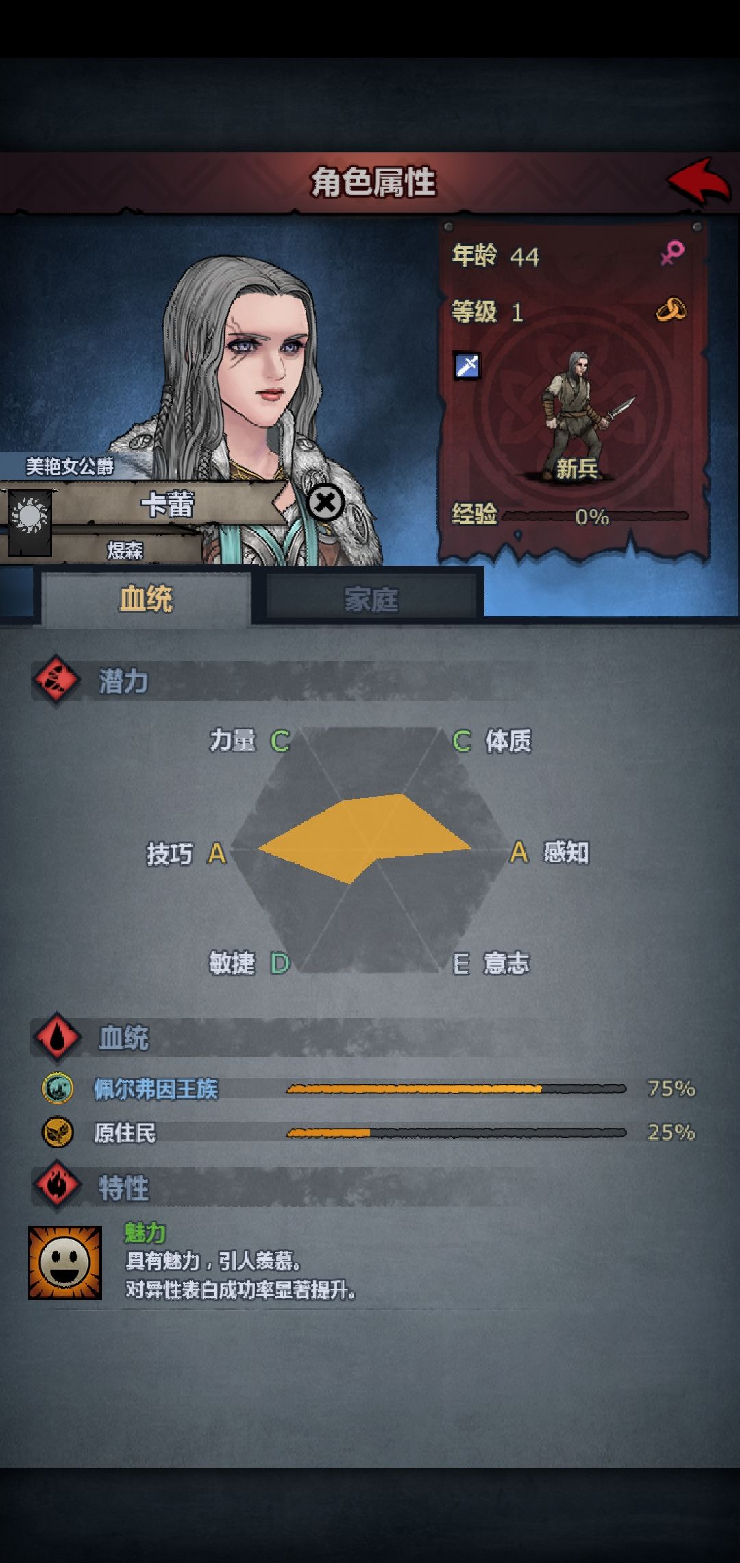 这是大致成品图,模拟的前中期60-70左右的一个属性,在这里我推荐长弓手,因为佩尔体大多数低于b,作为大剑士很难抗住熊的伤害;而长弓手作为远程攻击单位,可以配合重步兵一类的援护单位,输出空间比较安全(过八盾比较困难)。