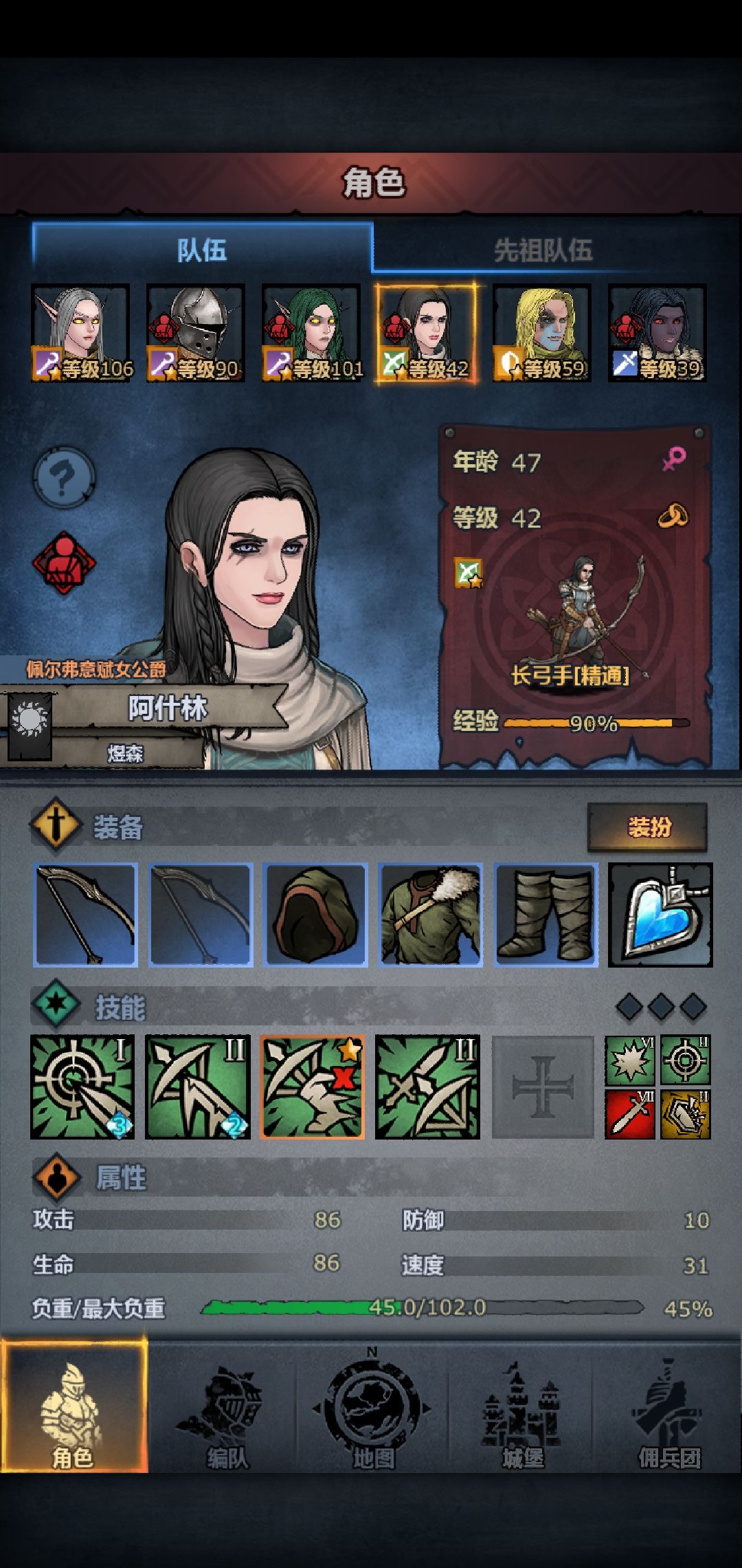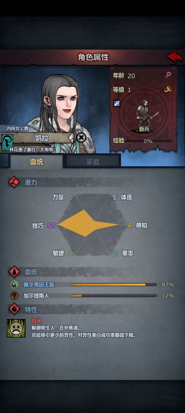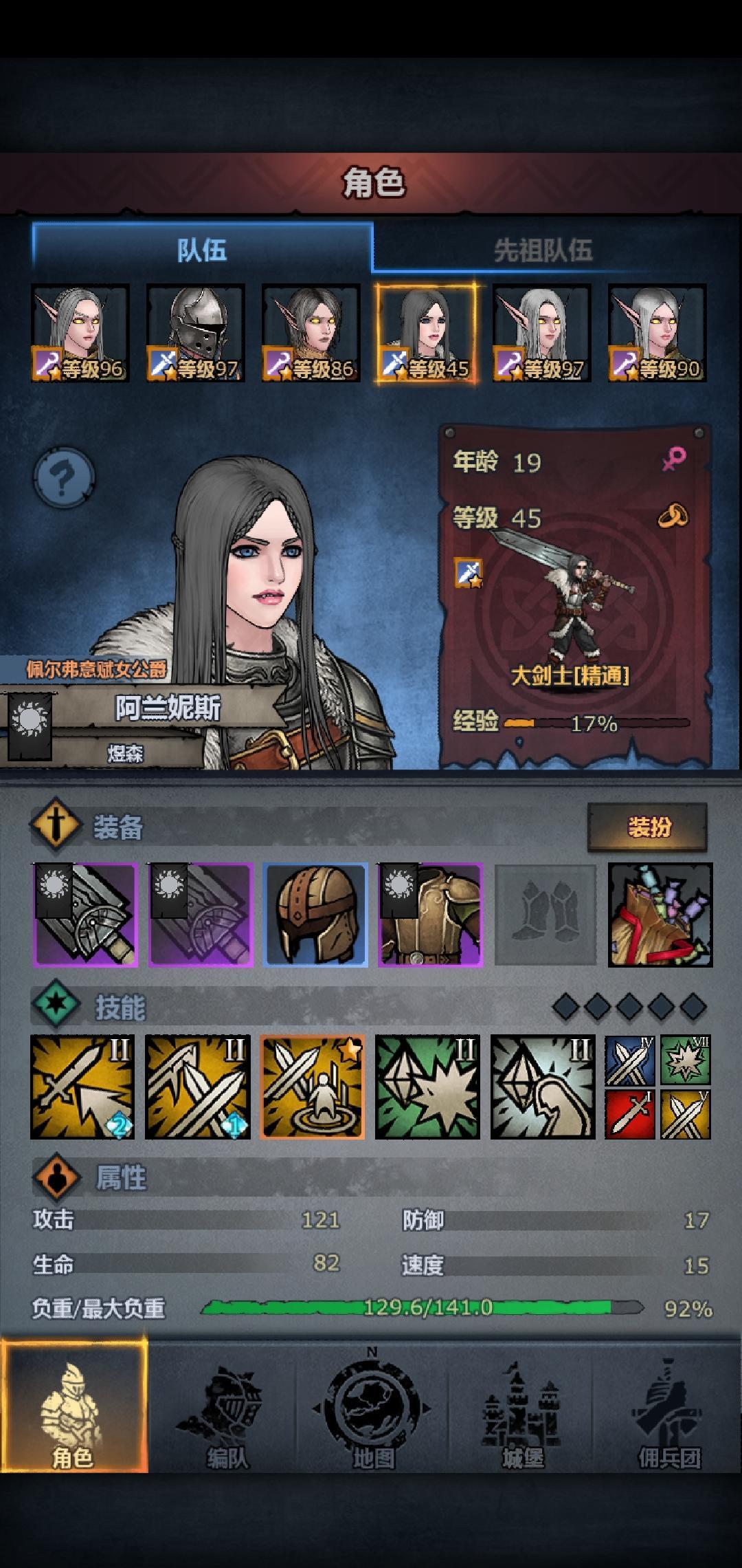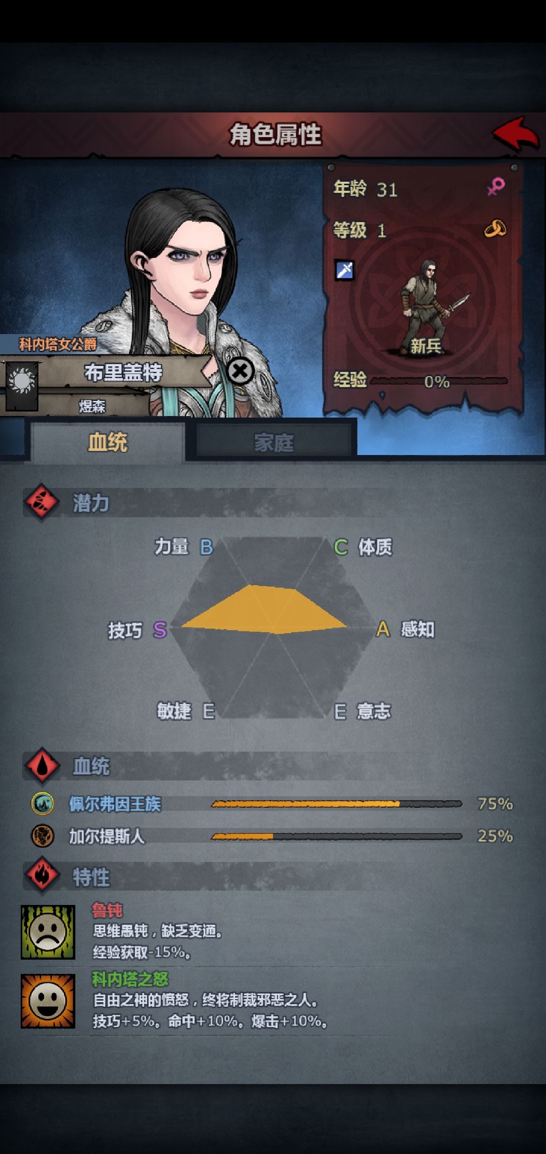 这是大致成品图,模拟的前中期60-70左右的一个属性,在这里我推荐长弓手,因为佩尔体大多数低于b,作为大剑士很难抗住熊的伤害;而长弓手作为远程攻击单位,可以配合重步兵一类的援护单位,输出空间比较安全(过八盾比较困难)。