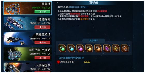 首领战活动在每天的12:00准时开启活动持续90分钟,活动开始后游戏会在各大星系随机刷出超级首领“班迪斯要塞”需要玩家在活动时间内找到和打败班迪斯要塞,如果在活动时间内班迪斯要塞没有被打败的话要塞就会消失;