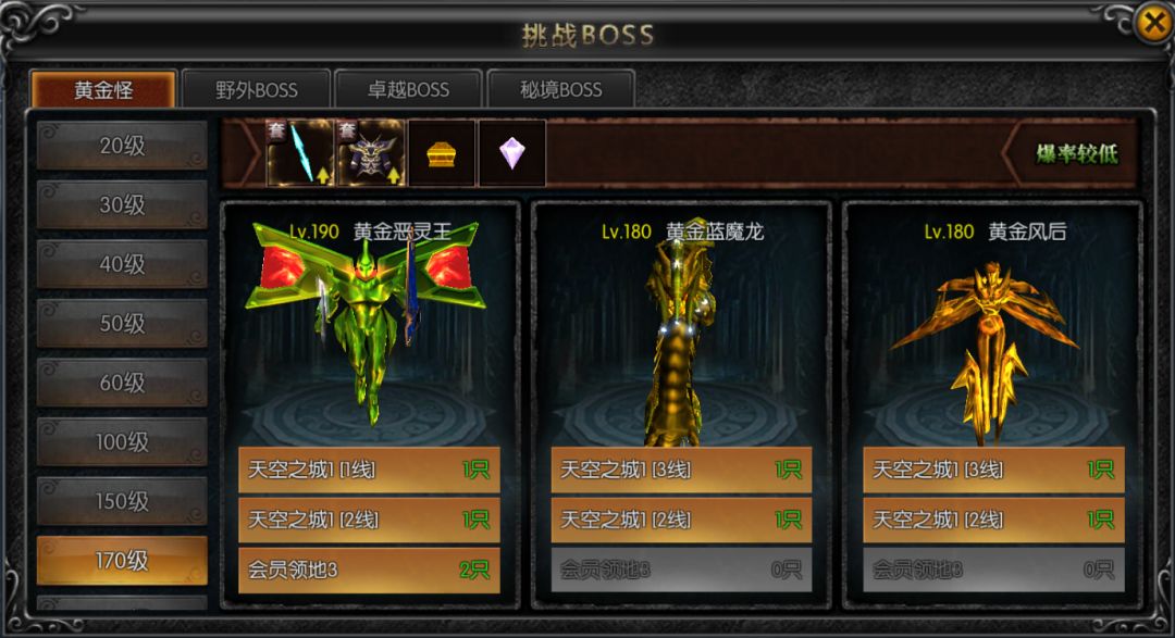 卓越BOSS爆率也是非常可观,但由于其数量更少,更显得稀有。