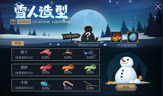 活动内容:活动期间,每日击败精英或首领后,可以为雪人完成造型并获取奖励。若玩家造型与幸运雪人造型一致,还可以获取额外奖励。